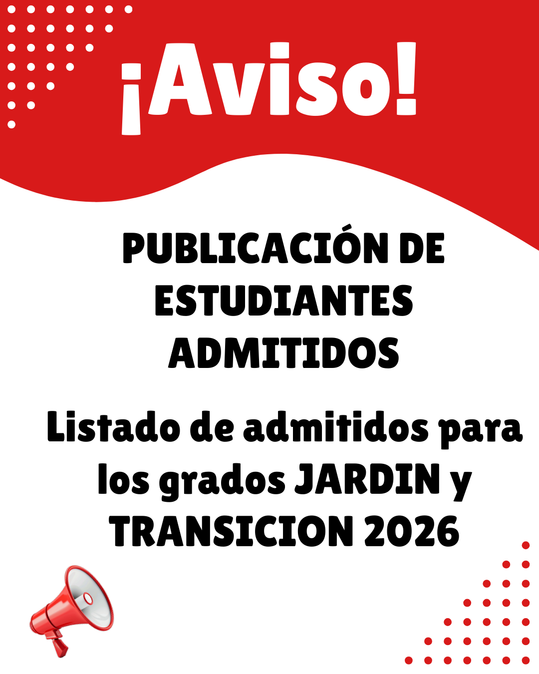 LISTADOS DE ADMITIDOS DE JARDIN Y TRANSICION PARA EL AÑO 2026